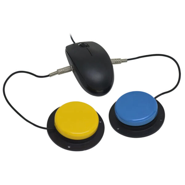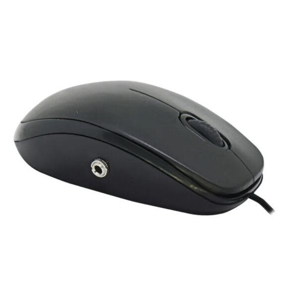 Mouse óptico com conexão USB e adaptação com duas entradas para acionadores (não incluso). Permite a utilização simultânea de dois acionadores, os quais simulam as funções dos botões direito e esquerdo, facilitando o acesso a programas com varredura.